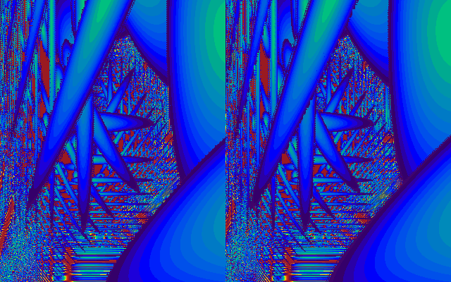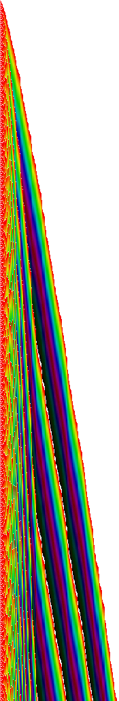 Picture created using MathVISION 2.4 and the prime number machine algorithm. The colors in this picture represent remainders after division by each successive prime. A new colored pixel is started for each new prime number. Details of the algorithm are covered in the MathVISION technical journal article on Three Simple Prime Number Generators.